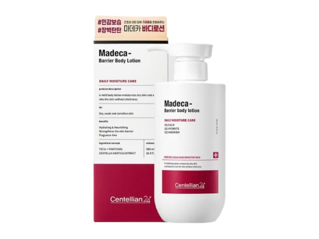 센텔리안24 마데카 베리어 바디로션은 진정과 회복에 초점을 맞춘 바디로션 제품입니다. 아시아티카 추출물(마데카소사이드)을 중심으로 외부 자극으로 손상된 피부 장벽 회복과 보습막 형성에 탁월해요. 사계절 내내 사용 가능하고, 예민한 피부 또는 샤워 후 건조함을 느끼시는 분들께 적합해요.