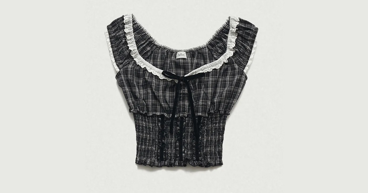 자칫 밋밋할 수 있는 체크 패턴에 화이트 레이스가 트리밍 되어 있어 사랑스러운 무드를 더해줍니다. 청바지나 화이트 스커트 어디에 매치해도 ‘꾸안꾸’ 데이트룩이 완성됩니다.